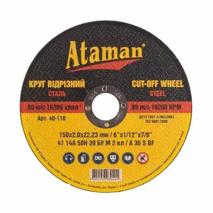 Круг відрізний ATAMAN 41 14А 150х2,0х22,23 (25шт)