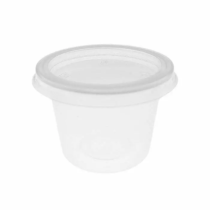 Прозорі невеликі контейнери з пластику. Вони найкраще підходять як гастрономічна упаковка для соусів, а також для невеликих закусок.
